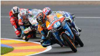 A corrida que começou com pista molhada, Terol, da Mapfre Aspar Equipa Moto2, fez partida sensacional para assumir a liderança na Curva 4, que ao início do dia tinha sido rebatizada com o seu nome.