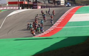 Uma corrida perfeita do início ao fim de Marco Bezzecchi (Aprilia Racing), que liderou todas as 25 voltas do Grande Prémio Qatar Airways de Portugal. Uma vitória vital que o colocou confortavelmente na terceira posição geral do Campeonato, e ele precisará apenas de alguns pontos para garantir o título na próxima semana, em Valência. Atrás do italiano na pista, Alex Márquez (BK8 Gresini Racing MotoGP) resistiu a uma recuperação tardia de Pedro Acosta (Red Bull KTM Factory Racing), com o pódio a ser reorganizado em relação ao Sprint de sábado.