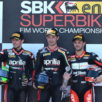 Aprilia começou o Campeonato Mundial de Superbike 2013 com uma verdadeira demonstração de força, ao monopolizar as 3 posições do pódio na primeira corrida em Phillip Island, com Sylvain Guintoli , Eugene Laverty nas Aprilias Oficiais e Michel Fabrizio. Este é o segundo hat-trick da marca italiana após Biaggi, Laverty e Chaz Davies em Nurburgring 2012.